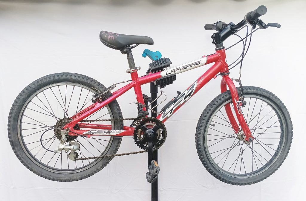 Vélo 20 pouces de marque « Lapierre », cadre aluminium, 2 plateaux, 12 vitesses, dérailleur Shimano. Câbles freins et dérailleurs neufs. Convient pour un enfant de 6 à 10 ans.