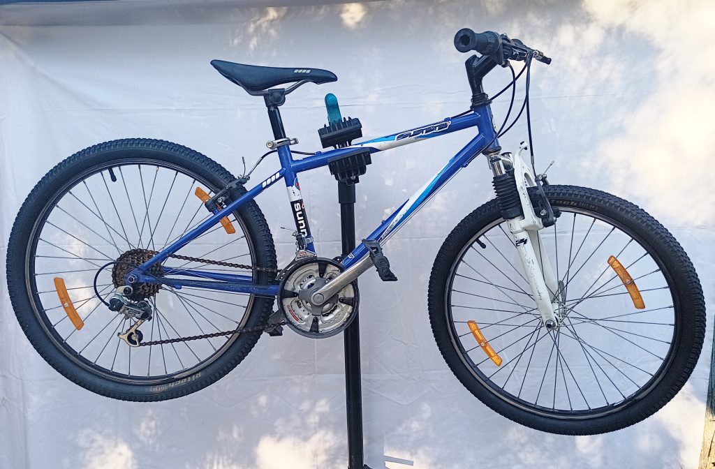 Vélo 24 pouces de marque « Sun » . Fourche télescopique, 3 plateaux, 18 vitesses, 2 pneus neufs. Un vélo qui a très peu roulé. Convient pour un enfant de 7 à 12 ans.
